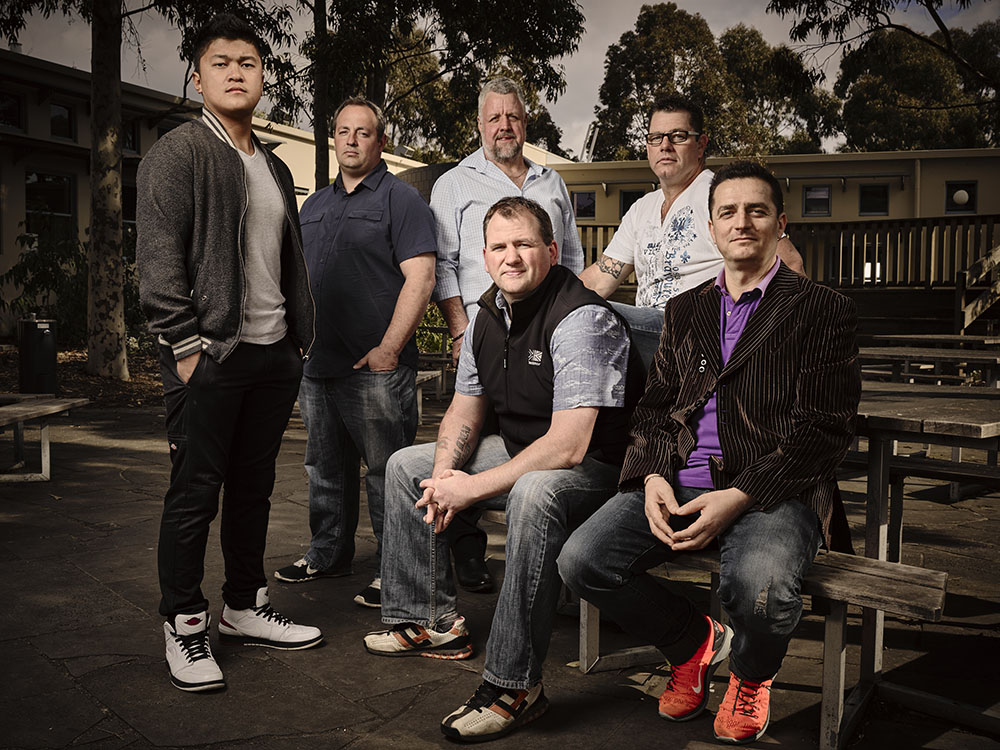 Under Men's Behavior Change Programs søsætter australiere i disse år, flere projekter for voldsramte pårørende, og for voldelige mænd, som de mænd der deltager i Call Me Dad. De frivillige medvirkende ses her.